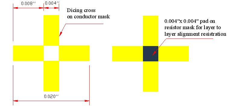 0.004§x0.020§ (101x508 microns) cross as shown in the figure 2.