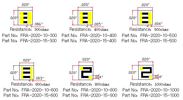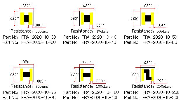 Description: Thin Film Chip Resistors use high quality 99.6% Al2O3 substrates and TaN thin film resistor material, and are manufactured by thin film process techniques. They feature low stray capacitance and also have 4μm (±20%) thick Front Side (Resistor Side) Au and thicker than 1μm Back Side (Ground Side) Au. They are ideally suited for Microwave Integrated Circuits (MICs),such as amplifier, attenuator, coupler, filter, and resonator modules, etc..