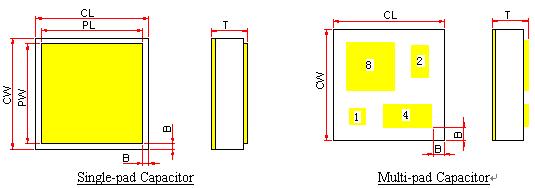 We offer both Single-pad and Multi-pad capacitors。Single-pad capacitors are mainly used for DC blocking, RF bypass, source bypass, filtering, and impedance matching, and Multi-pad capacitors are mainly used for matching networks, Tank circuits, and dielectric resonator tuning and coupling。